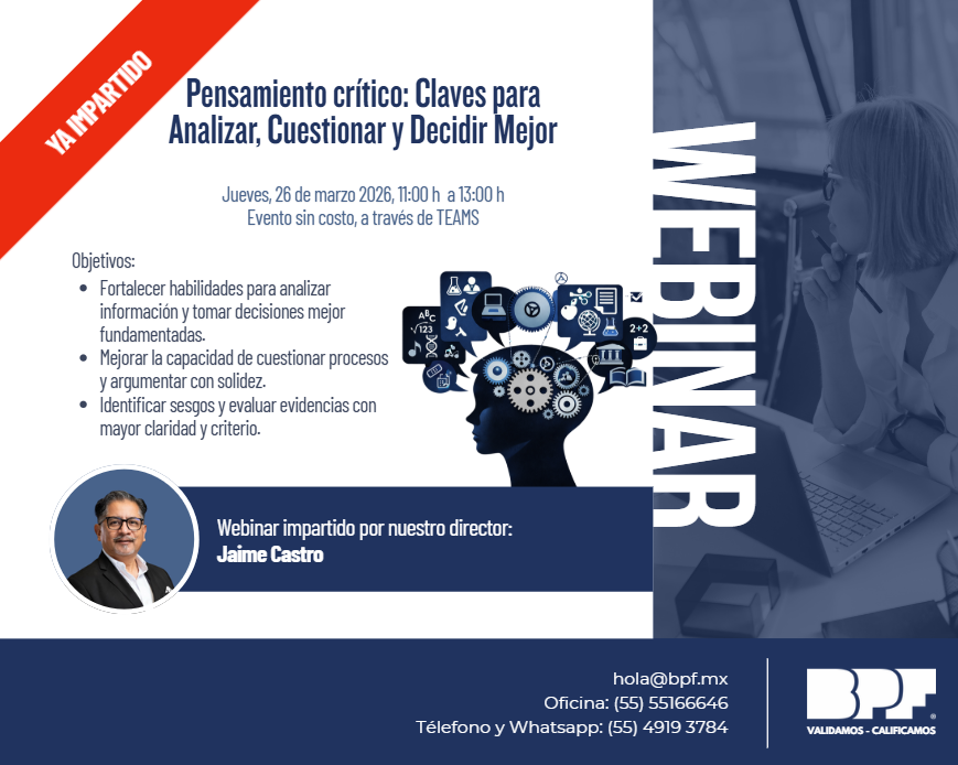 Es un Webinar Gratuito donde podrás; fortalecer habilidades para analizar información y tomar decisiones fundamentadas; mejorar la capacidad de cuestionar procesos y argumentar; identificar sesgos y evaluar evidencias con criterio